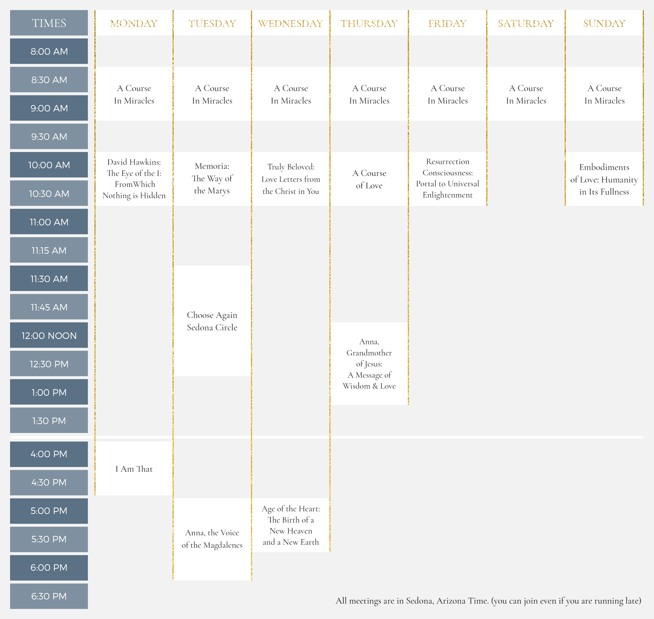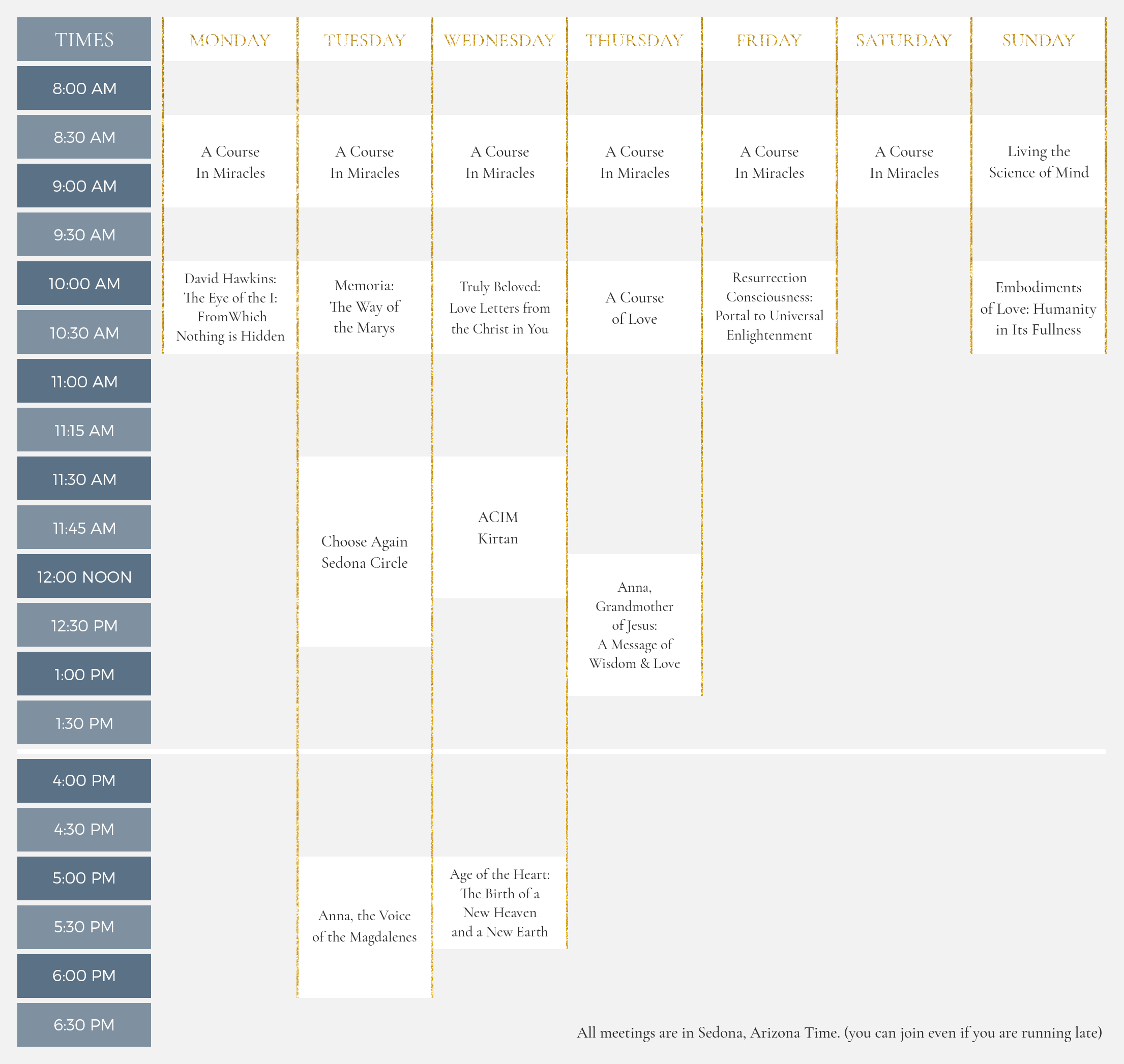 Welcome to our Living Truth Community. Based in Sedona, AZ, yet available across the world (via Zoom) we are an ever-evolving, spiritual community dedicated to our own, and each other’s spiritual evolution through reading, dialogue and practice of sacred, truth-based teachings. Together we are committed to unconditional love and realizing the full embodiment and inner balance of the Divine Feminine and Divine Masculine.